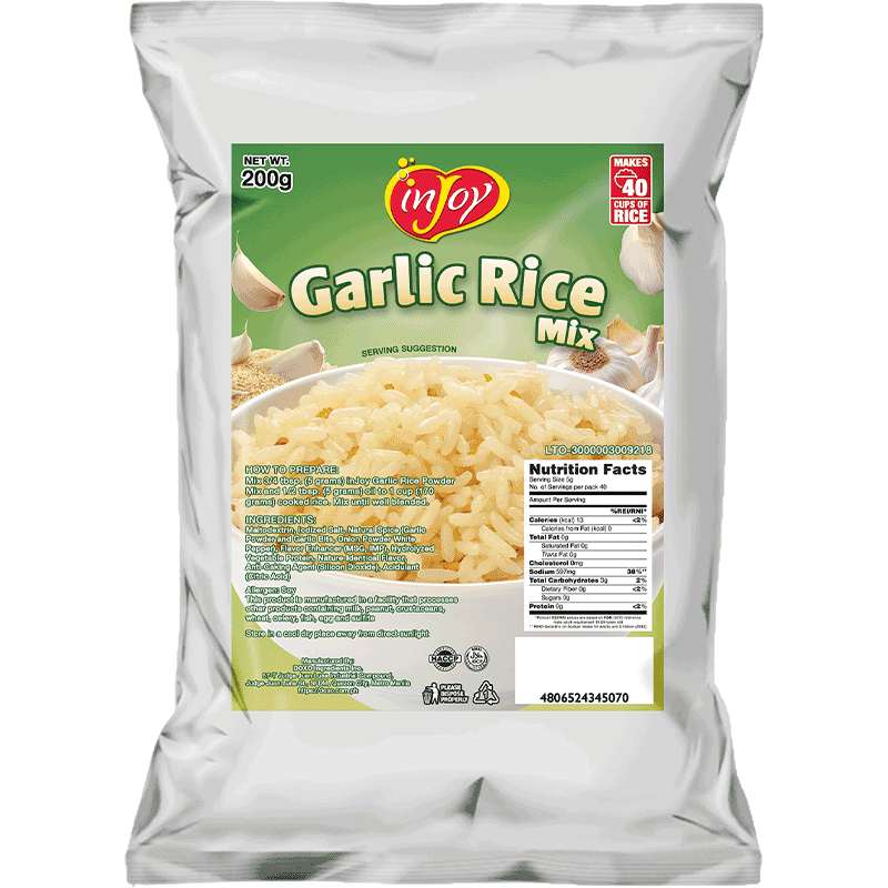 - Add 3/4 tbsp. (5g) inJoy Garlic Rice Powder Mix